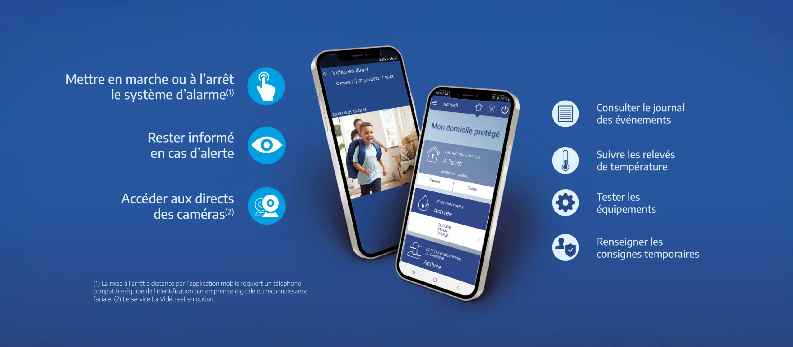 (*) Matériel de marque BIRDIE, hors caméras, détecteurs de fumée, et de monoxyde de carbone. Photo non contractuelle, le téléphone ne fait pas partie de l’équipement.